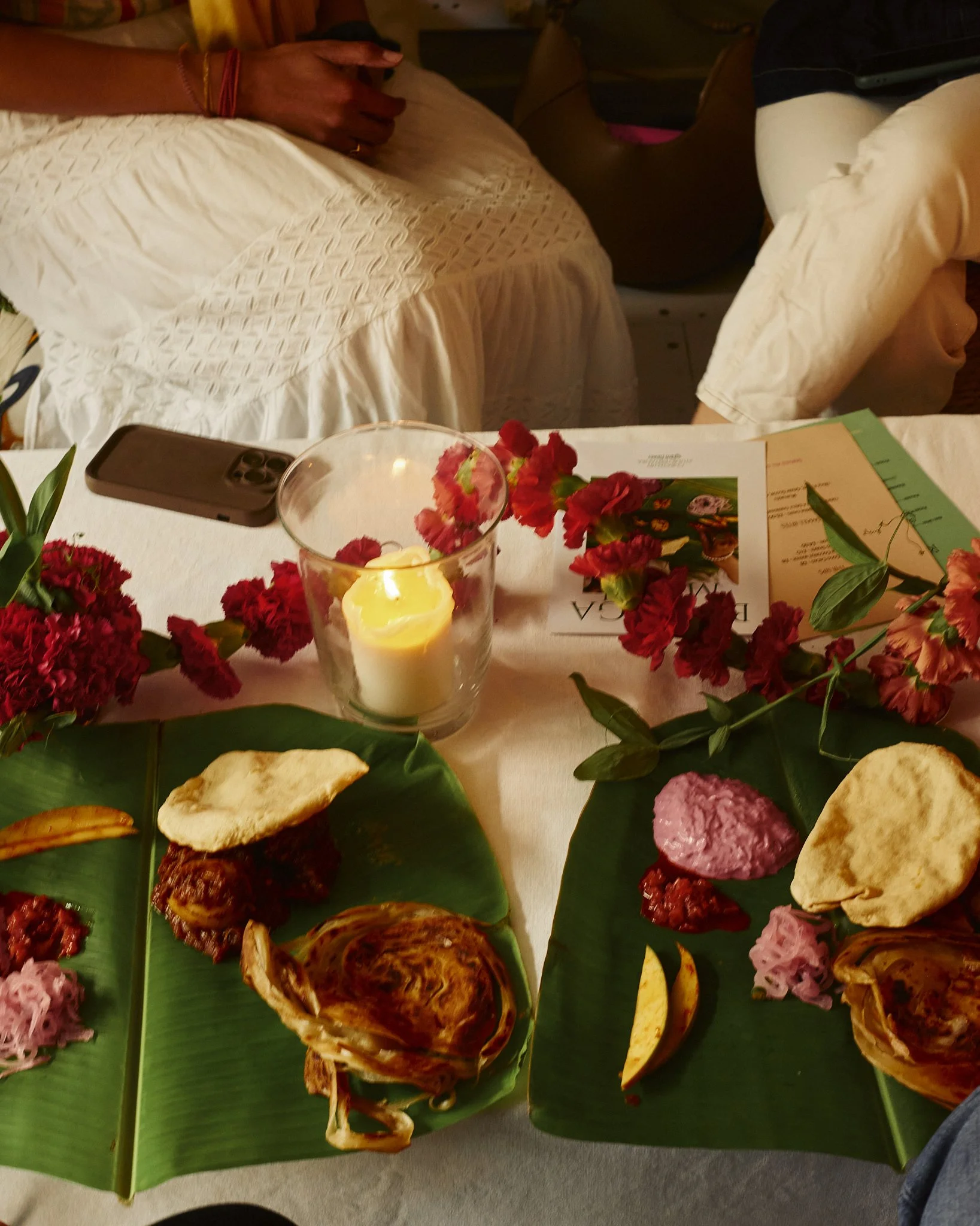 BOTTEGA BANANA, A modern ode to dining on a banana leaf, where tradition meets humble luxury. This multi-course experience is designed to be mindful, immersive, and exquisitely crafted. Alongside this, the BANANA BAR offers a more playful, on-the-go selection of freshly made banana crisps, delicate bhujiya, and refreshing, fruit-forward drinks—a charming nod to nostalgia, beautifully packaged to perfection.