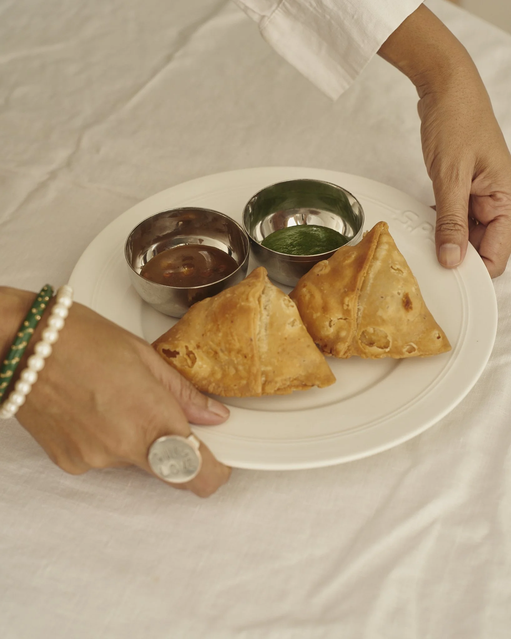 STUDIO SAMOSA, Our signature Samosas & Mimosas experience, a vibrant aperitivo-style affair celebrating samosas in all their forms—from classic to indulgent truffled variations, and even lightly gilded in gold—paired with refreshing mimosas, set against an exquisitely curated tablescape designed for effortless connection.